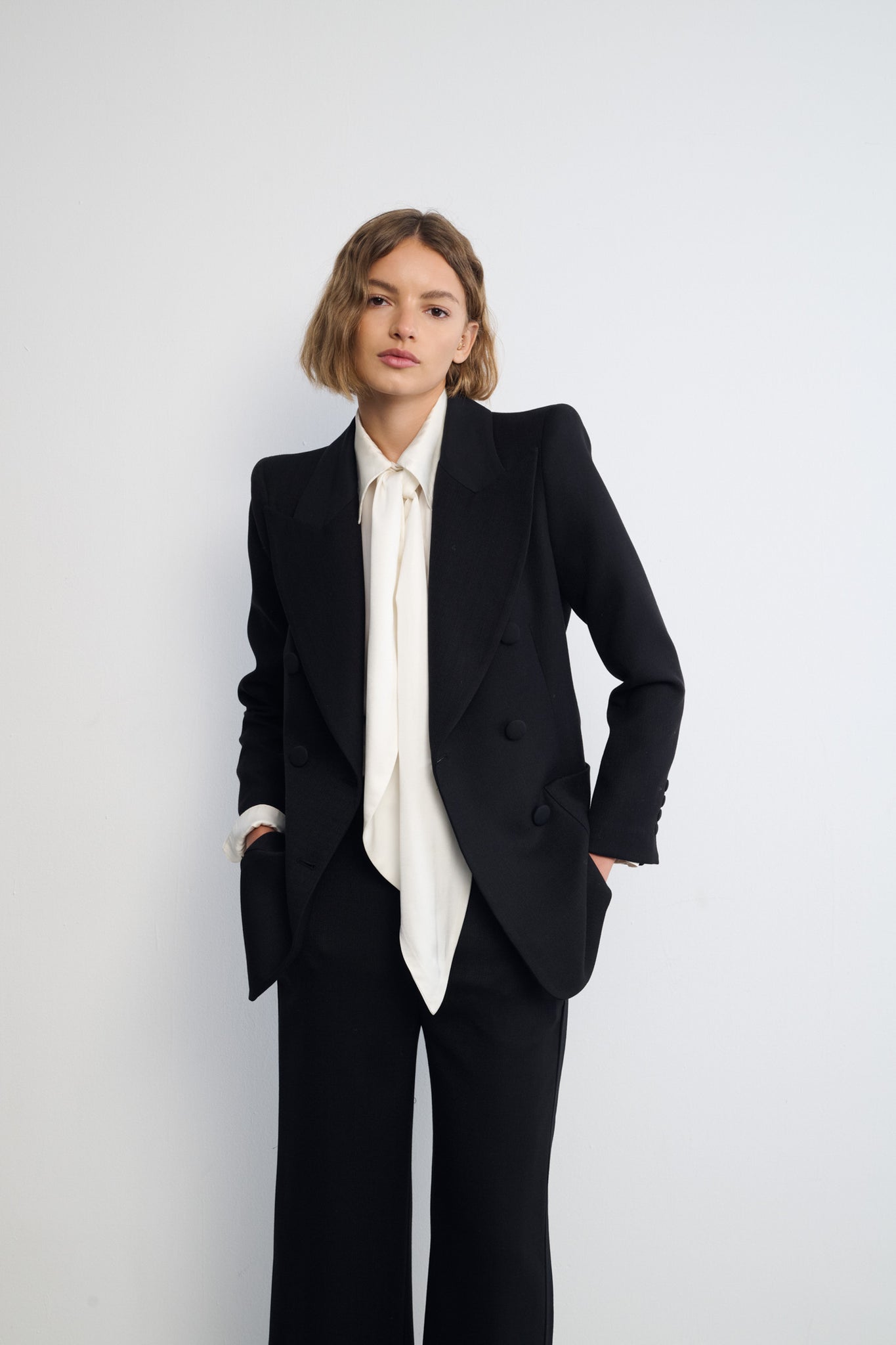 BLAZER RÚSTICA NEGRA CONTRASTE CREPE