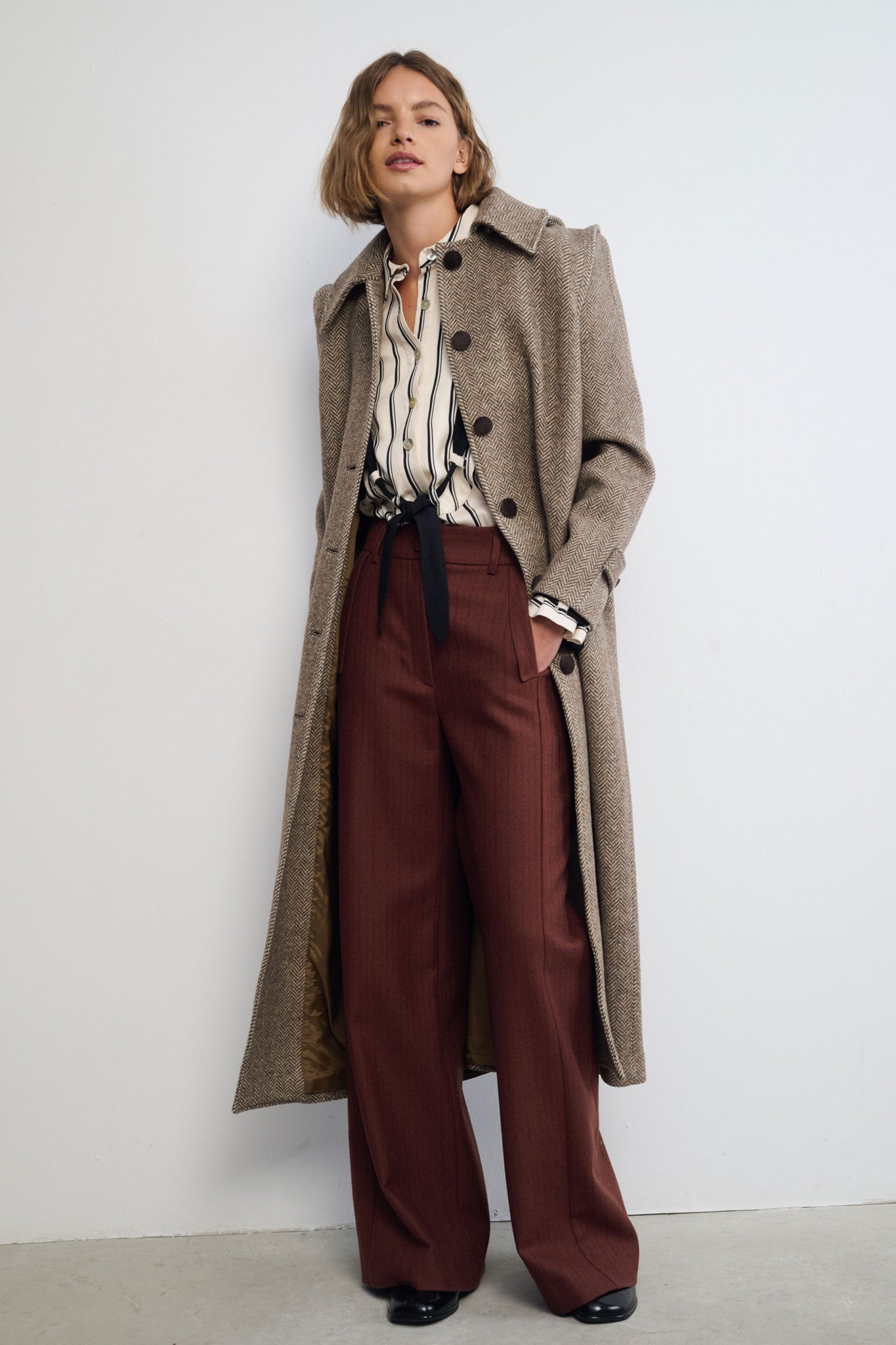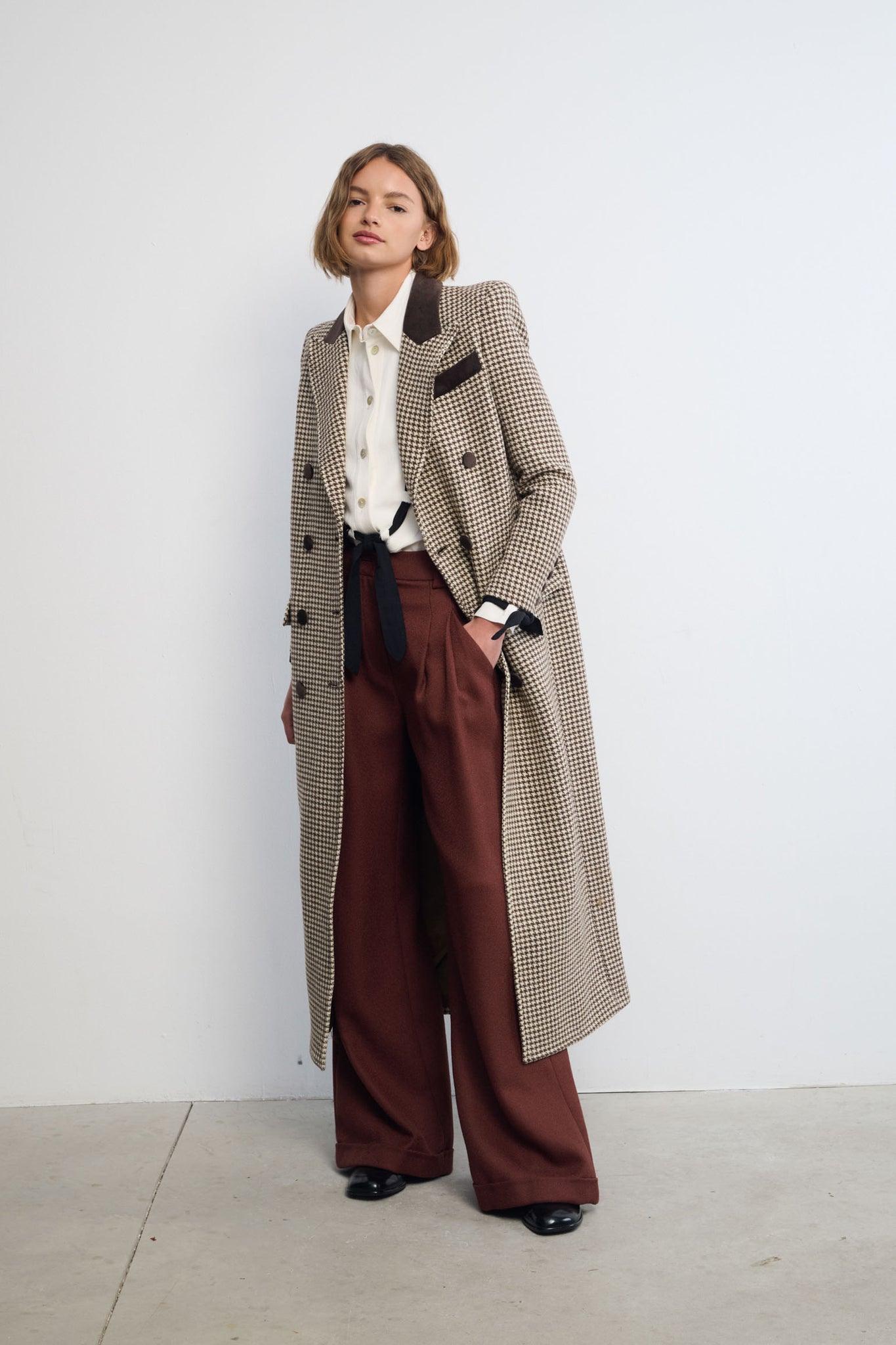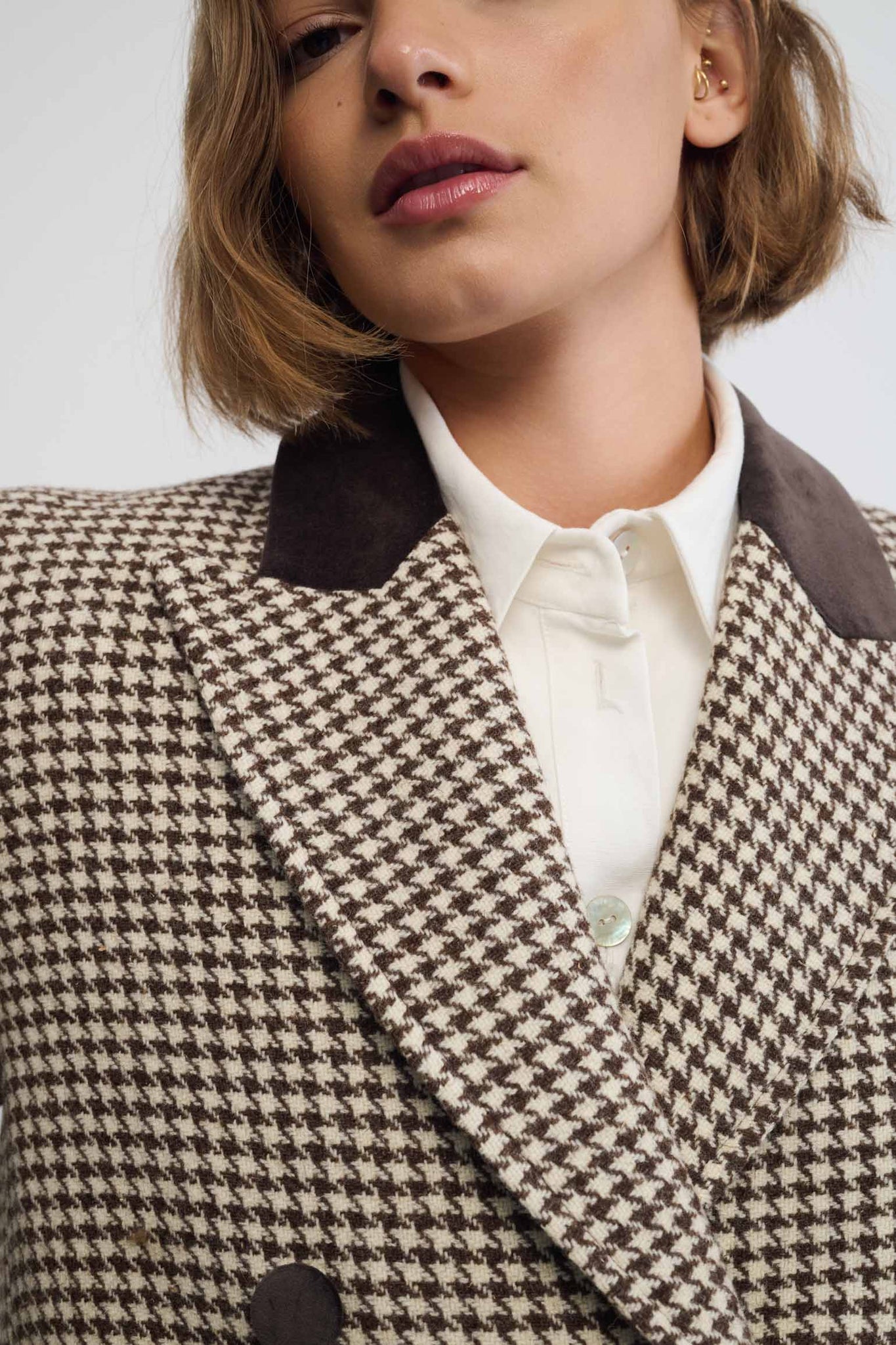 ABRIGO TEJÓN PATA DE GALLO MARRÓN