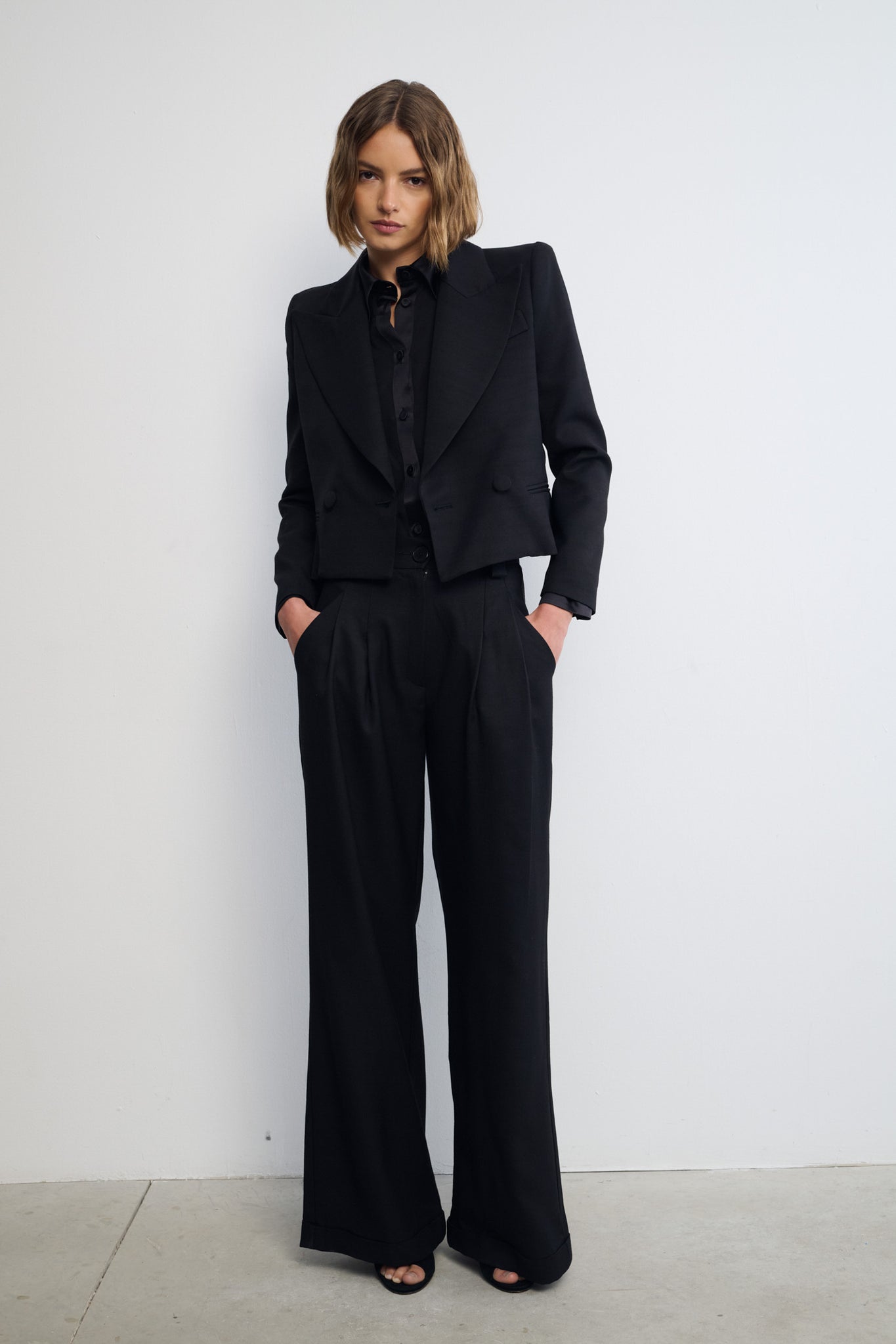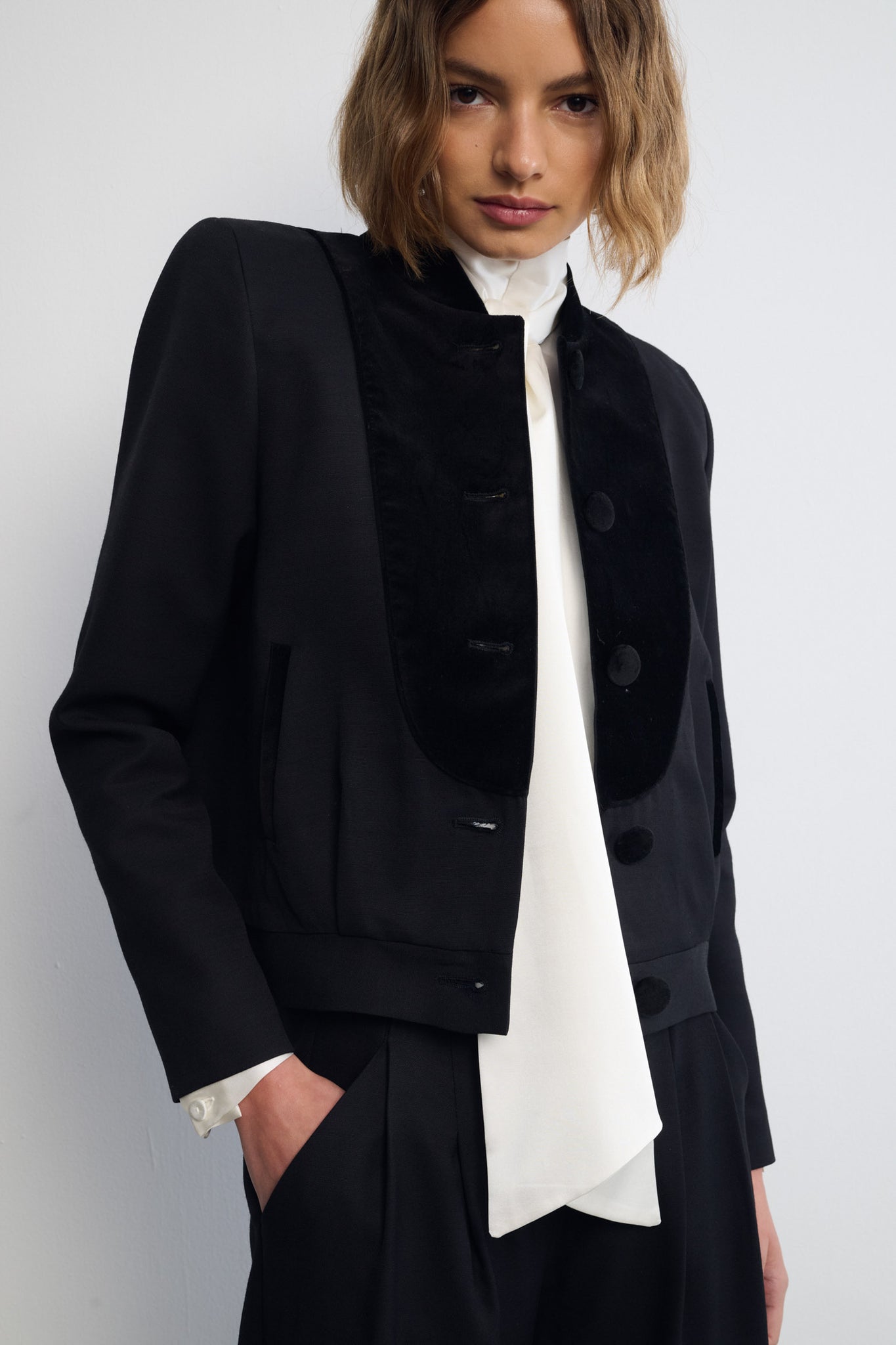 BLAZER RÚSTICA NEGRA CONTRASTE CREPE