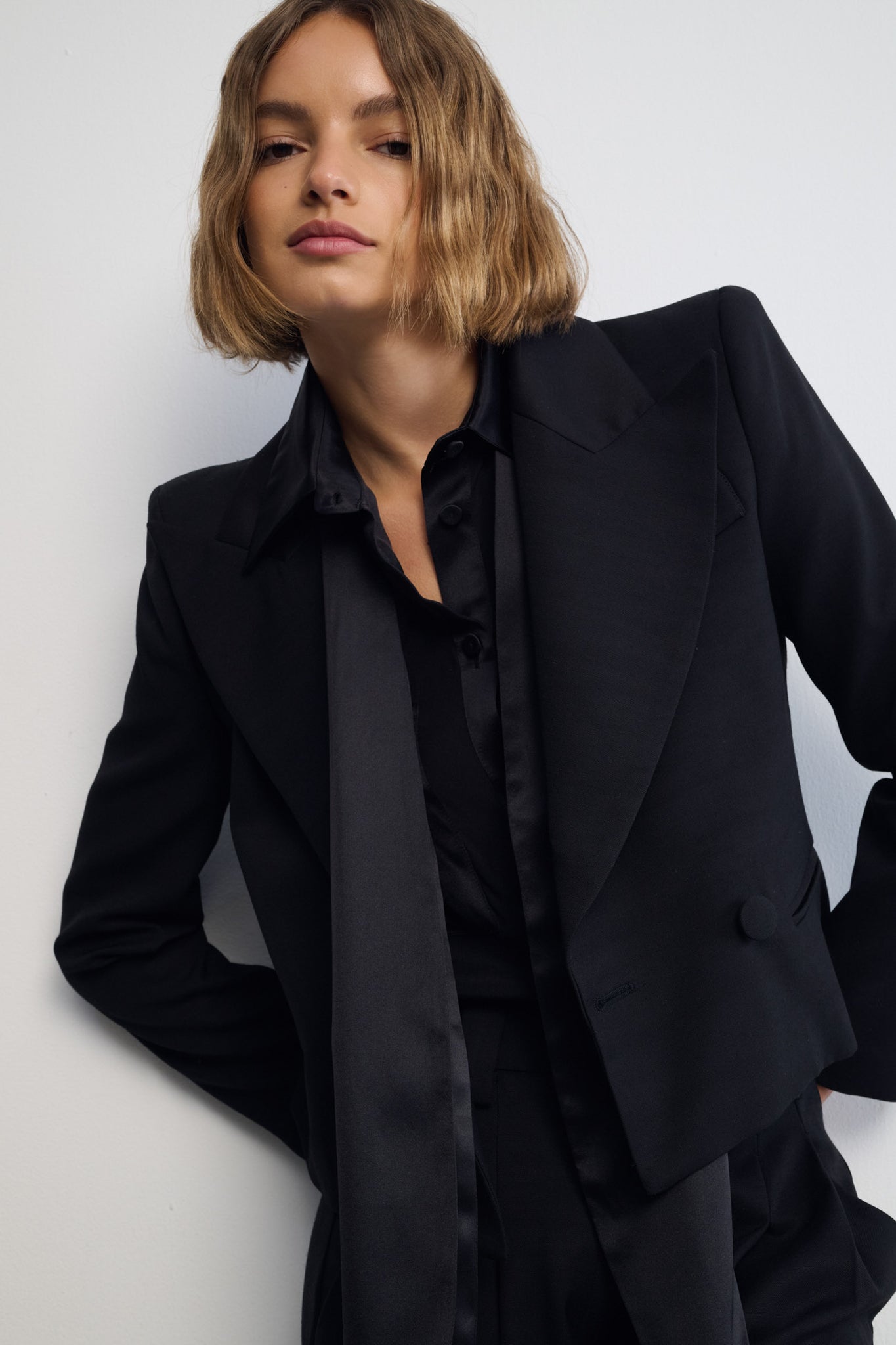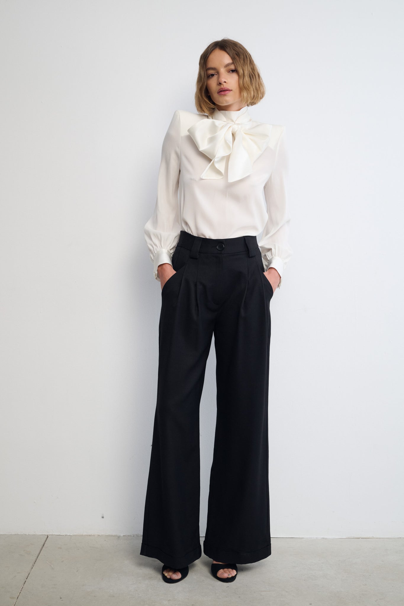 BLUSA MINERVA SATÉN DE SEDA NEGRO